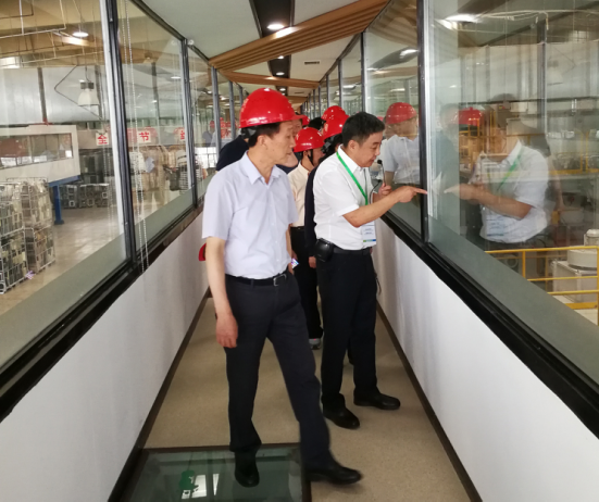 牛主任一行實地參觀了電視機/電腦處理生產線、進口德國冰箱處理生產線、洗衣機處理生產線,并在華新環保展廳詳細了解固體廢物回收和環保處理情況。