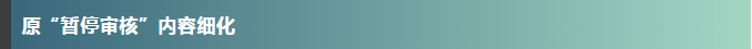 新版《指南》將原“暫停審核”細分為:暫停審核、停止審核和終止審核。