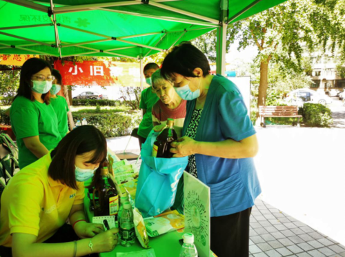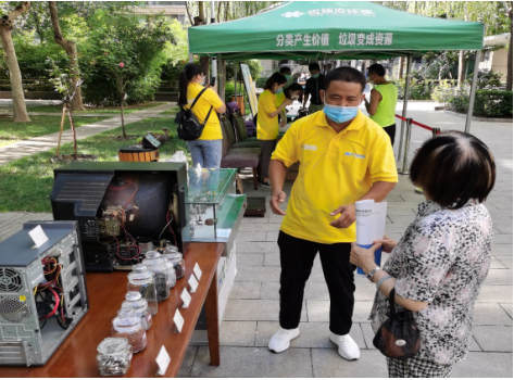 在北再生集團的攤點,居民用廢舊電器即可換取兌換券,再憑券換取米面油等生活用品。工作人員還提供免費回收大件垃圾服務、幫助社區清理“僵尸自行車”,贏得了居民點贊~
