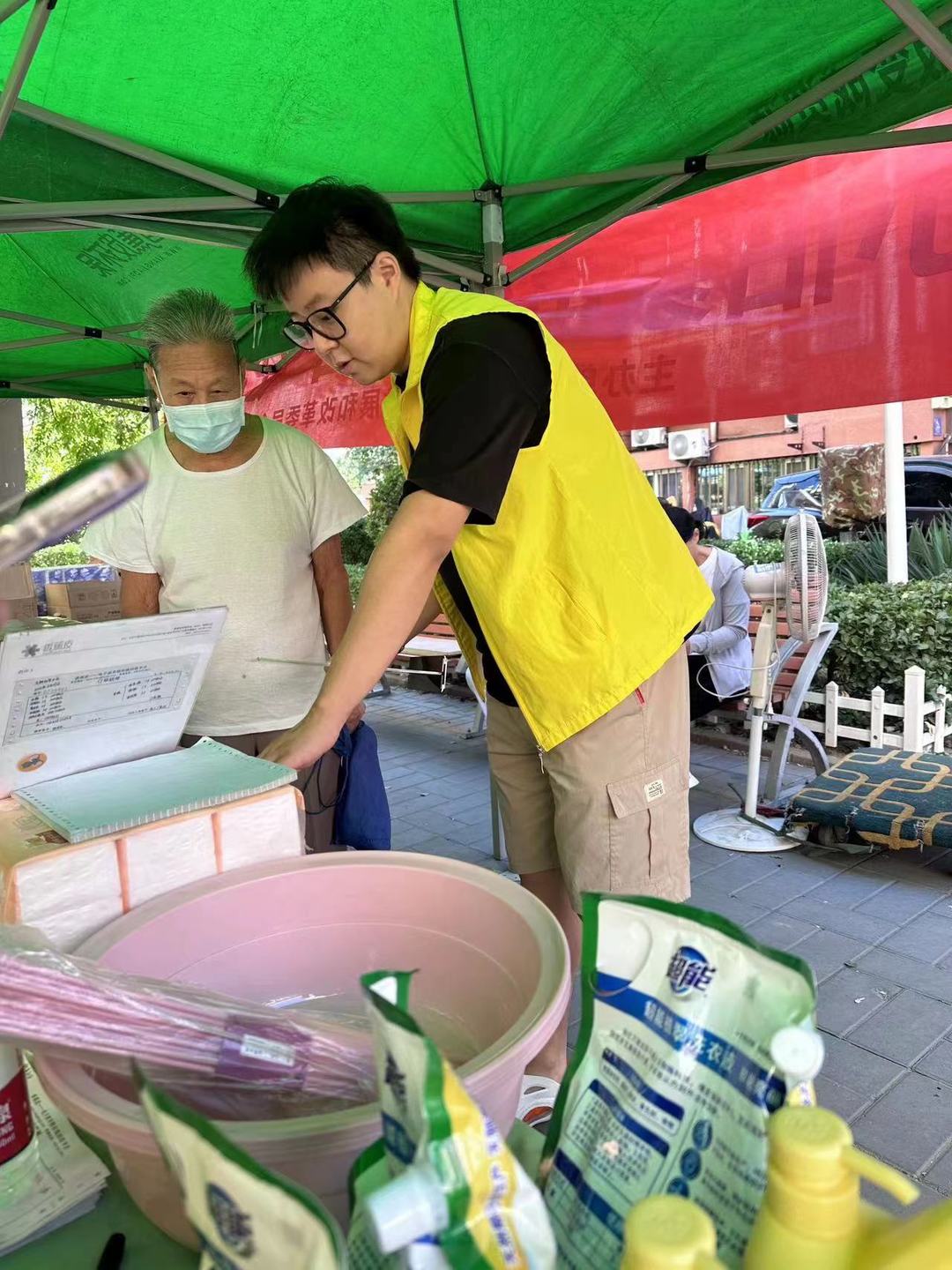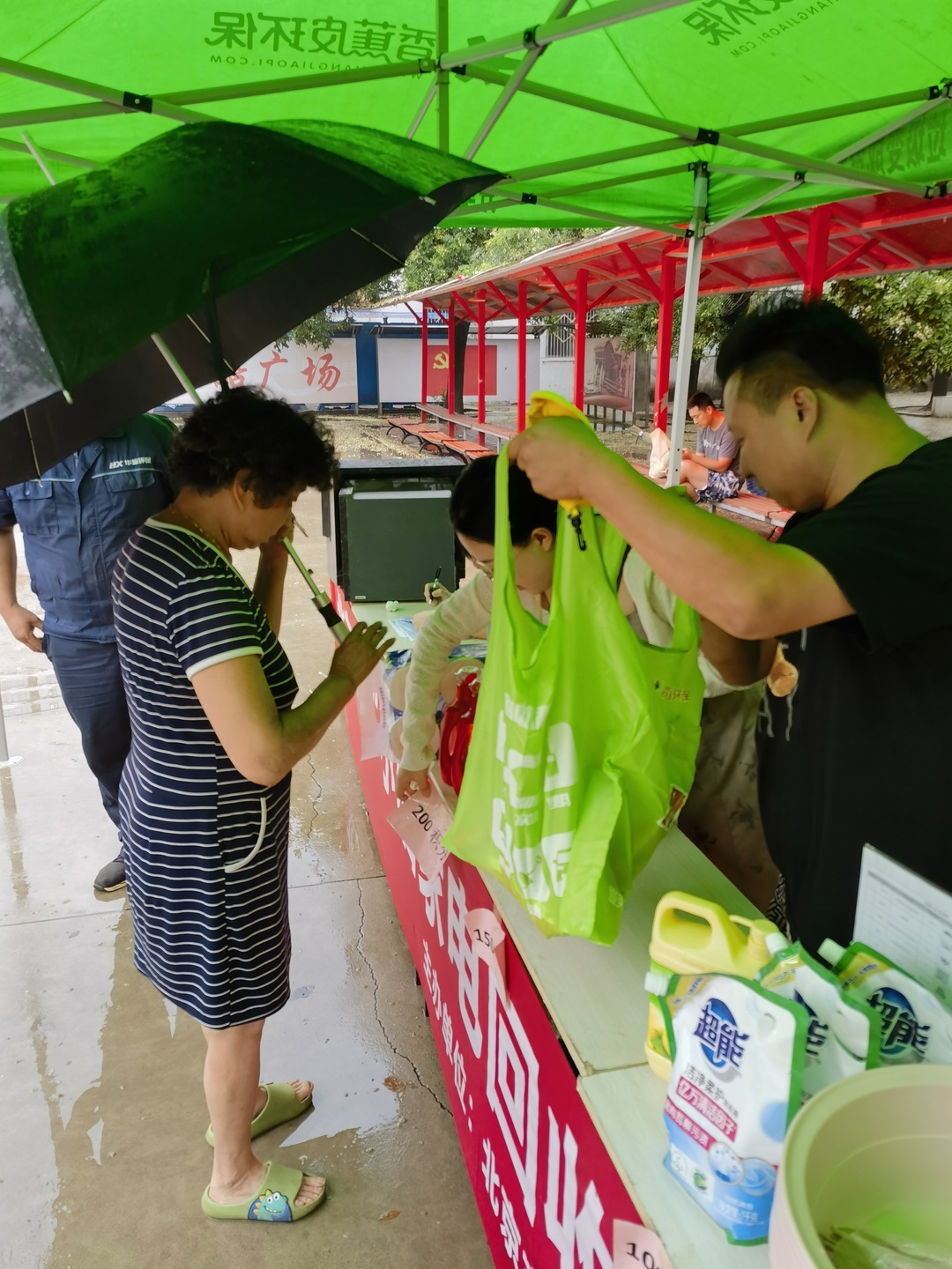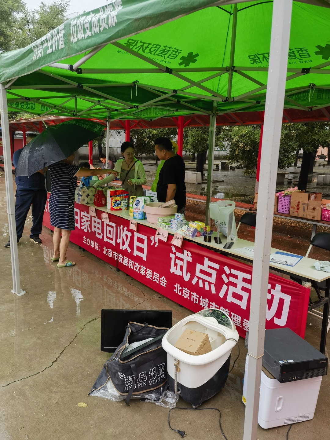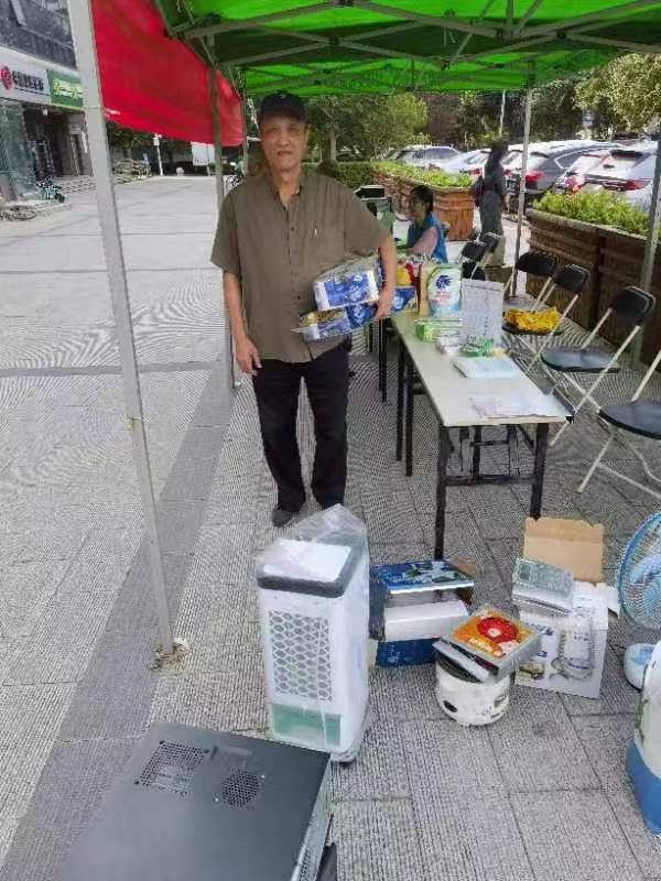 活動現(xiàn)場安置帳篷及懸掛橫幅,此次懸掛宣傳橫幅不僅體現(xiàn)廢棄電器電子產品新型回收利用體系試點建設試點,同時也向居民傳遞了公民的環(huán)保責任。